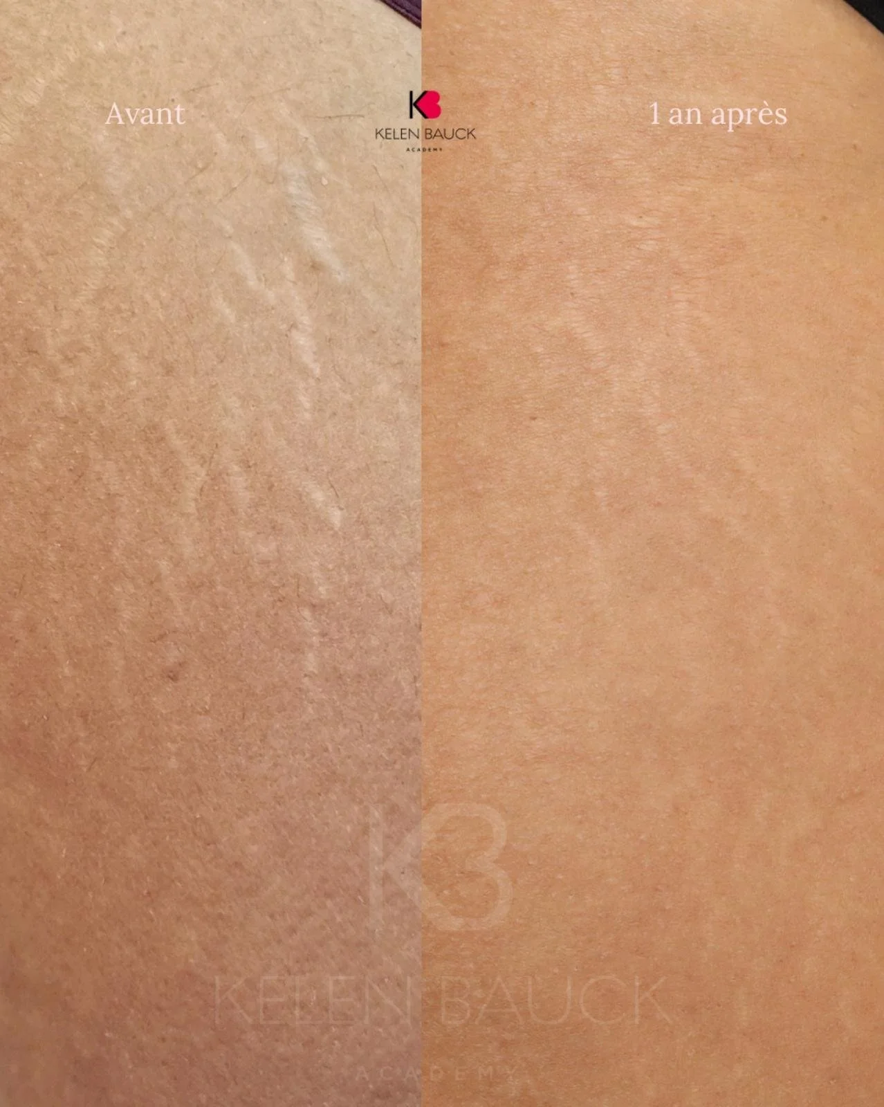 La pigmentation est adaptée à votre carnation pour redonner une apparence uniforme à la peau en corrigeant l’aspect des vergetures sans chirurgie. Le rendu est uniforme, doux et parfaitement intégré à la peau.