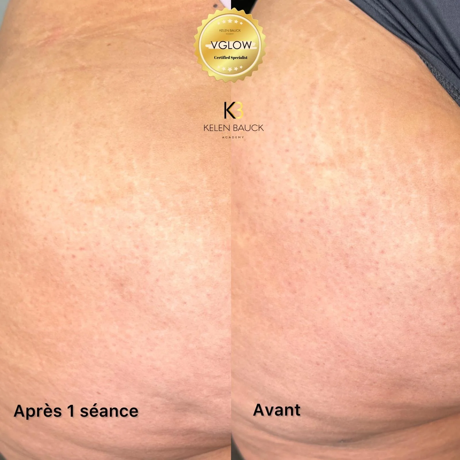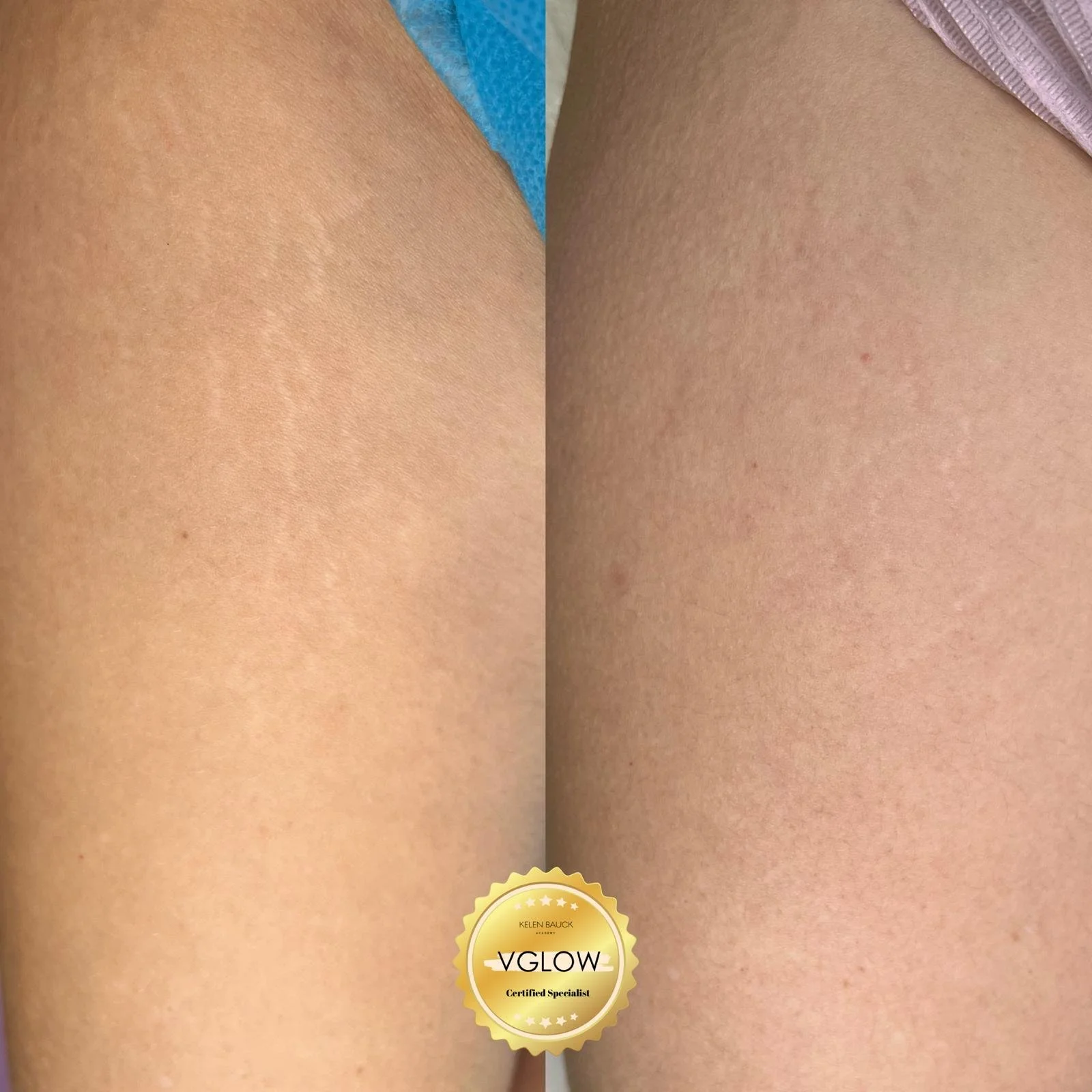 Redonnez à votre peau sa confiance et sa beauté naturelle grâce à V-Glow, une technique exclusive de nano-stimulation cellulaire et pigmentation ciblée sans équivalent, spécialement conçue pour estomper visiblement les vergetures, qu'elles soient rouges, blanches ou anciennes.